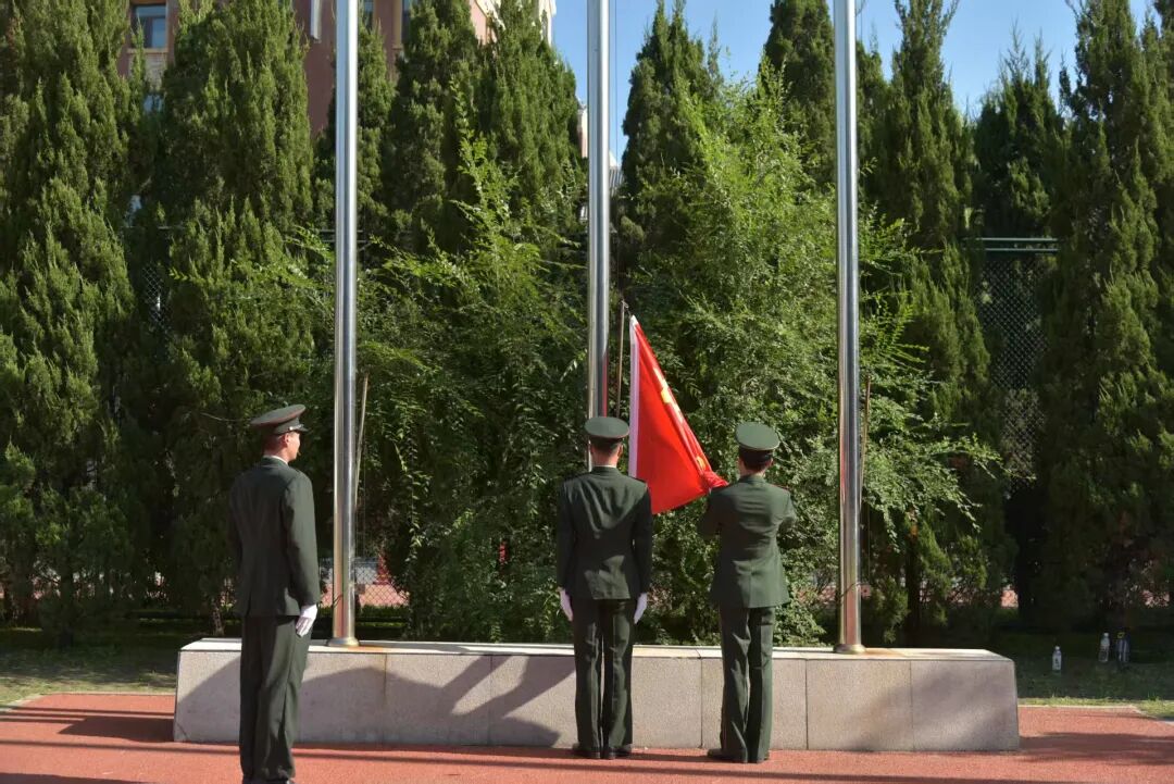 全体起立升国旗奏唱国歌。