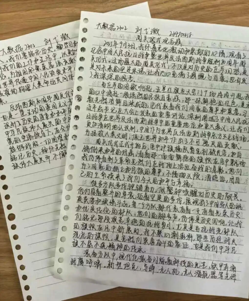 同时,同学们也针对观看阅兵中的感受,编程设计了爱国小旗帜和纪念画报。屏幕上的小图案或许简单,却藏着对阅兵仪式最质朴的致敬。代码绘制结束后,同学们又拿起笔,将屏幕里的图案与记忆中的阅兵场景重叠,写下专属观后感。从代码里的严谨逻辑,到文字里的赤诚情怀,这场趣味课堂让“算法”有了温度,也让“爱国”有了具体的模样。