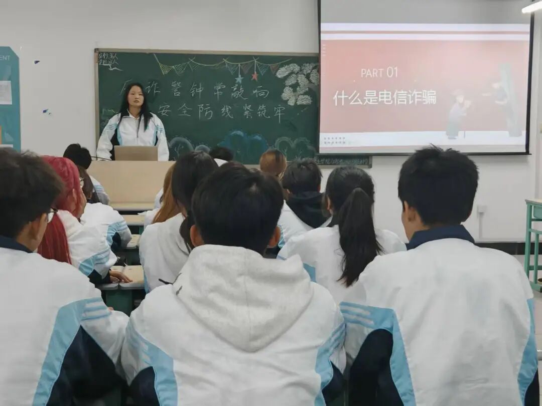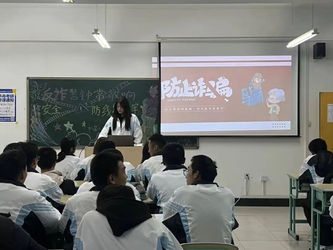 活动伊始,团支书为同学们详细讲解了常见的电信诈骗手段,如刷单返利、冒充客服、虚假实习招聘等。通过一个个真实的案例,同学们深刻认识到电信诈骗的狡猾和危害,也明白了自己作为易受骗群体,需要时刻保持警惕。随后,团支书带领同学们观看了反诈宣传视频《全民反诈在行动》。视频中,民警们通过生动的讲解和情景再现,展示了电信诈骗的全过程以及如何防范诈骗。同学们观看后,纷纷表示受益匪浅,对电信诈骗的套路有了更清晰的认识,也掌握了更多的防诈技巧,如“三不一多”原则:未知链接点击、陌生来电不轻信、个人信息不透露、转账汇款多核实。