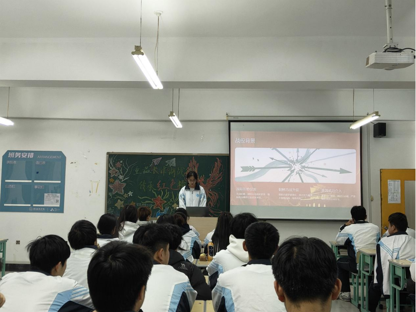 在理论学习后,各班集中观看了长津湖战役主题纪录片。观影结束后,同学们纷纷表示,纪录片里没有特效,只有真实的战场痕迹、老兵的口述、泛黄的史料。大家一致认为,“红色精神”不是遥远的口号,是绝境里的咬牙坚持;更明白了当代青年的“答卷”,要写在提升自我的每一步里,更要写在践行中国梦的实践中。