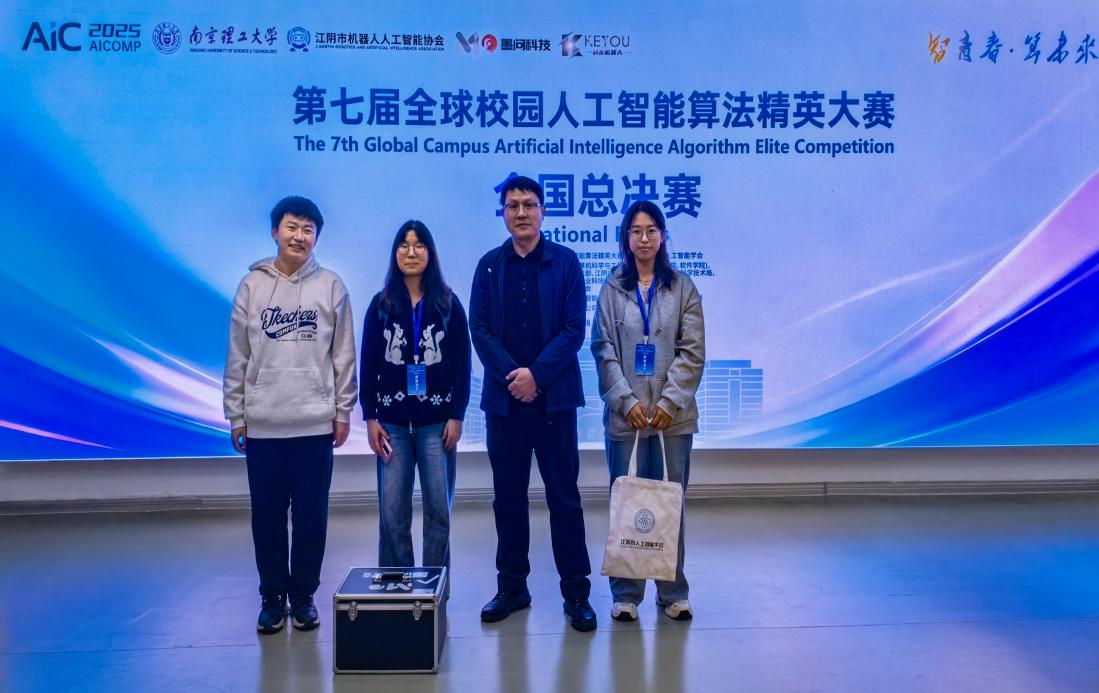 总决赛现场,面对来自海内外高校的顶尖参赛队伍,兰星熠、王贺宝、张璐绚三位同学沉着应战,紧扣赛事主题,将课堂所学的人工智能理论知识与算法实践深度融合,精准运用机器学习、计算机视觉等核心技术解决赛事设置的实际问题,展现出扎实的专业素养、灵活的问题解决能力与卓越的创新潜力,最终凭借优异的表现获得评委的认可。