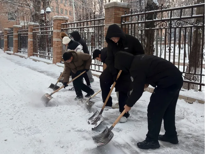 风雪中,同学们的身影活跃在校园各个角落。铁锹破冰的声响清脆有力,扫帚清雪的节奏整齐划一。大家分工有序,配合默契,组成多个清扫小组,有条不紊地清理着主干道、教学楼台阶和停车区域等重点区域的积雪。在集体的共同努力下,厚重的积雪迅速消融,一条条安全通道得以畅通。这场生动的劳动实践课,让同学们在实践中悟到了奉献的意义,体会到了团队协作的重要性。