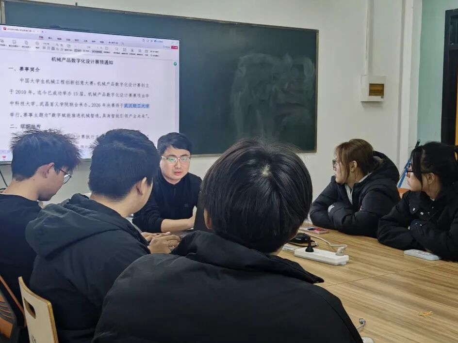 新学期伊始,“深瞳智造”社团便确立了“实战应用、竞赛提升”的核心赛道。在专业老师的悉心指导与社团社长黄圣清的统筹带领下,参赛团队迅速集结,以机械产品数字化设计赛事为核心,展开了深度研讨与高强度备赛。从对赛事规则的精准解读,到对作品方向的系统梳理;从智能小车的场景化实操演示,到数字孪生技术的前沿前瞻,每一个环节都凝聚着社团成员的心血与智慧。