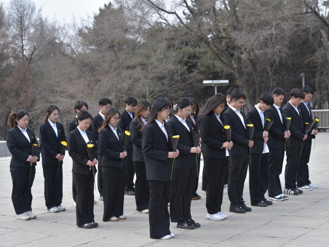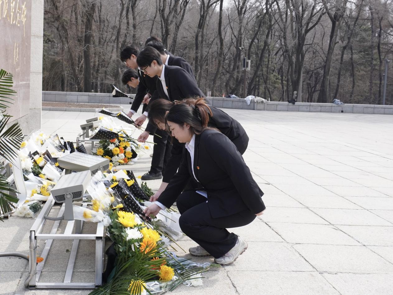 苍松翠柏映丰碑,清明时节寄深情。同学们身着肃穆正装,怀着崇敬的心情有序来到长春解放纪念碑前,整齐列队站好。在庄严肃穆的氛围中,大家首先向革命先烈集体默哀,寄托深切追思。默哀毕,同学们依次上前,将手中的菊花轻轻摆放在纪念碑基座旁,以素洁鲜花传递对先烈的崇高敬意。阳光洒落,花儿静立,与庄重的纪念碑相映成景,无声诉说着跨越时空的敬意。大家纷纷表示,革命先烈精神如同不灭的火种,照亮前行道路,作为新时代青年,定当铭记牺牲与奉献,以青春之姿接续奋斗,不负时代嘱托。